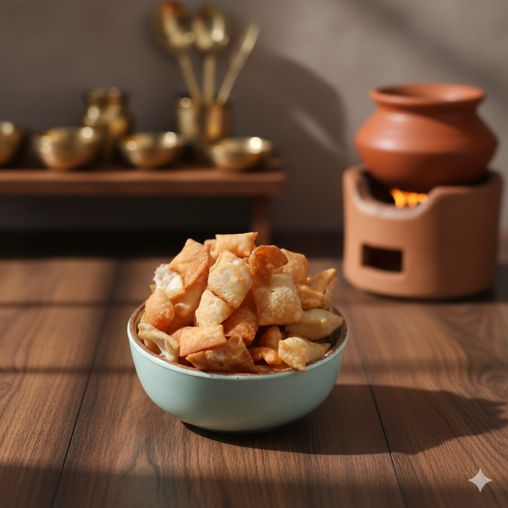 Prepared using a sweetened dough and shaped into classic diamond pieces, each tukudi is deep-fried to achieve a beautiful golden color and crisp, biscuit-like texture. The mild sweetness makes it enjoyable for all age groups, from kids to elders.